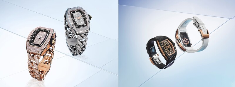 Open Link鍊环式錶鍊所配衬的RM 07-01自动上鍊腕錶系列,更是充分展现RICHARD MILLE品牌特色与卓然工艺的精湛杰作!RM 07-01系列女錶有Carbon TPT®碳纤维、彩色陶瓷等不同高科技材质,为了辉映腕錶的奢华精緻,必然不能少了钻石与宝石璀璨点缀;而RICHARD MILLE出类拔萃的宝石镶嵌工艺便体现在这类材质的高硬度錶壳上,需要透过特殊精密仪器在钻凿出细緻镶孔,加上珠宝镶嵌匠人的天工巧艺,才造就出腕錶上的灿然梦幻星光!以白金或红金打造的RM 07-01雪花镶镶钻自动上鍊腕錶,更运用顶级珠宝界也罕见的高难度,将细緻美钻以看似随性铺排、实则精準紧密贴合的方式,使每一只雪花镶嵌腕錶都独一无二,绽放如耀眼冬日景致的闪耀之美!而RM 07-01系列致力于非凡材质、宝石镶嵌、錶鍊款式的卓然美感,无疑满足了当代高品味收藏家对高阶创新时计的需求,令人深深陶醉于RICHARD MILLE追求独树一帜的品牌精神中。